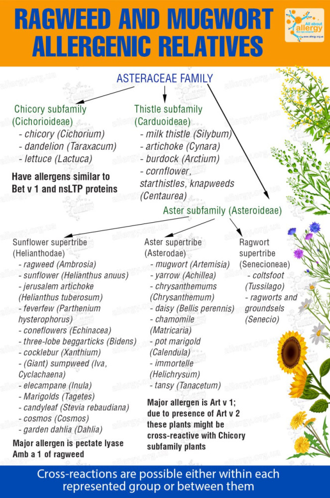 Cross-sensitivity to plant fruits, the so-called pollen-food syndrome, is also caused by LTPs. Additionally, they are resistant to digestion and heating. LTPs, particularly from ragweed, also cause cross-reactivity with similar proteins in sunflowers—both pollen and seeds.